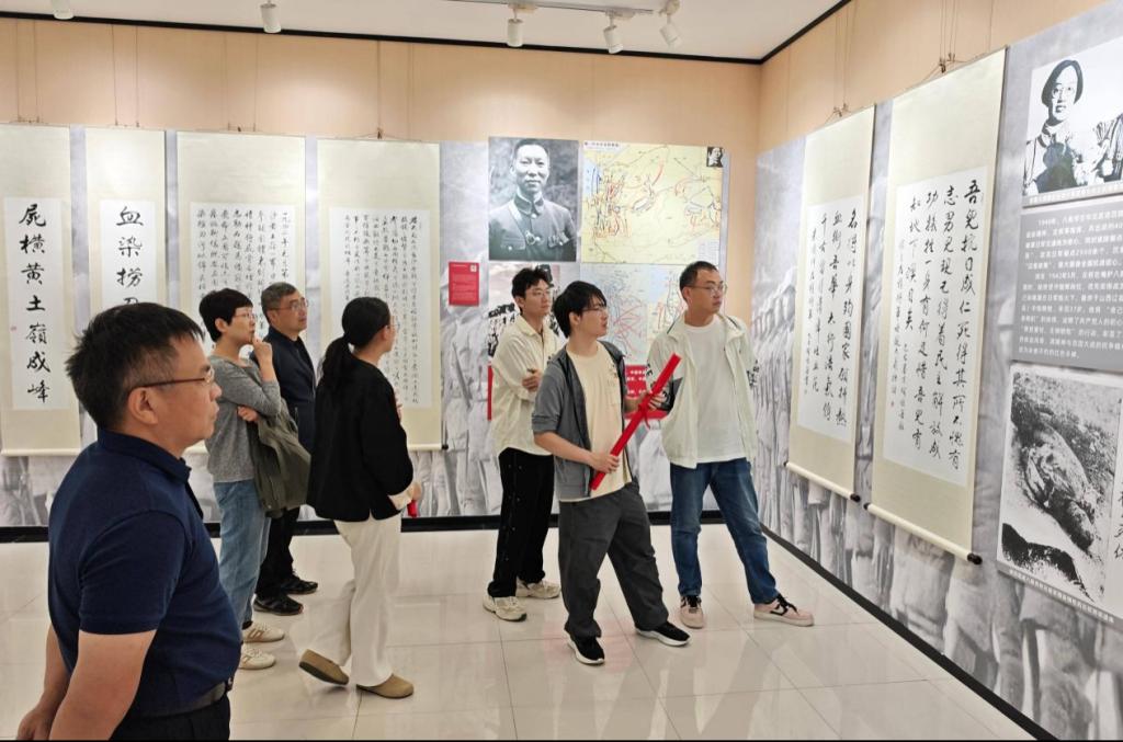 2025年9月24日下午,为纪念中国人民抗日战争暨世界反法西斯战争胜利80周年,伟德bv1946官网首页教学实验中心党支部组织全体教师前往毓秀楼,对何继善院士的“忠昭日月 气壮河山”书法展览进行了观摩。