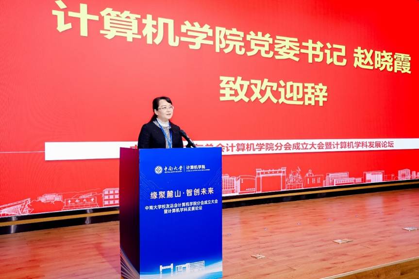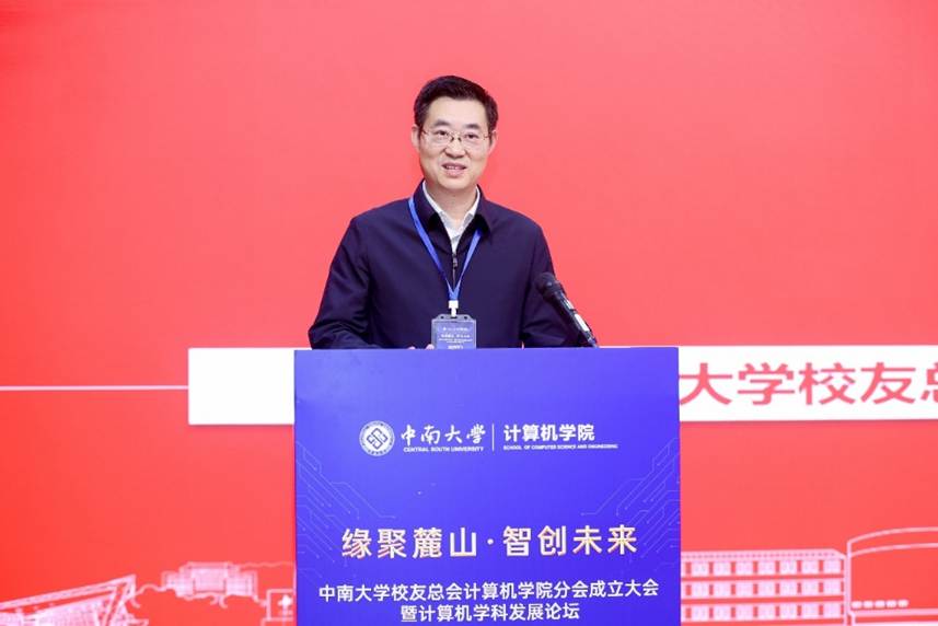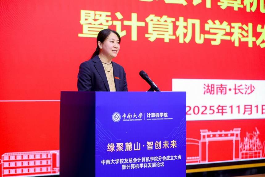 当选会长李敏发表讲话,她表示,校友分会是联结每一位中南计算机人的情感纽带与发展桥梁。未来分会将通过技术沙龙、行业论坛、返校日等活动,持续促进校友之间的交流互鉴、双向赋能,助力个人成长与学院发展同频共振。她真切希望广大校友常回“家”看看,积极参与学院人才培养与学科建设,共同书写属于中南计算机大家庭的温暖未来。