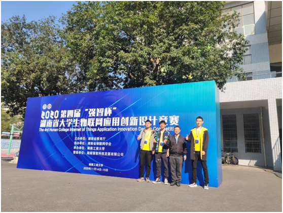 2020年11月14-15日,由湖南省教育厅主办、湖南省物联网学会协办的湖南省 “中仁教育杯”大学生物联网应用创新设计竞赛在湖南工商大学成功举办。刘伟荣老师担任领队,带领伟德bv1946官网首页物联网工程专业18级范筱峰,张浩翔,侯英晨三位同学组建的创意赛1队在“创意赛”赛项中与来自湖南省内的30支队伍进行激烈角逐,表现突出,获得一等奖。