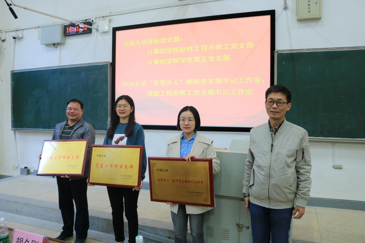 随后,史书记为校级样板党支部和“双带头人”教师党支部书记工作室授牌。