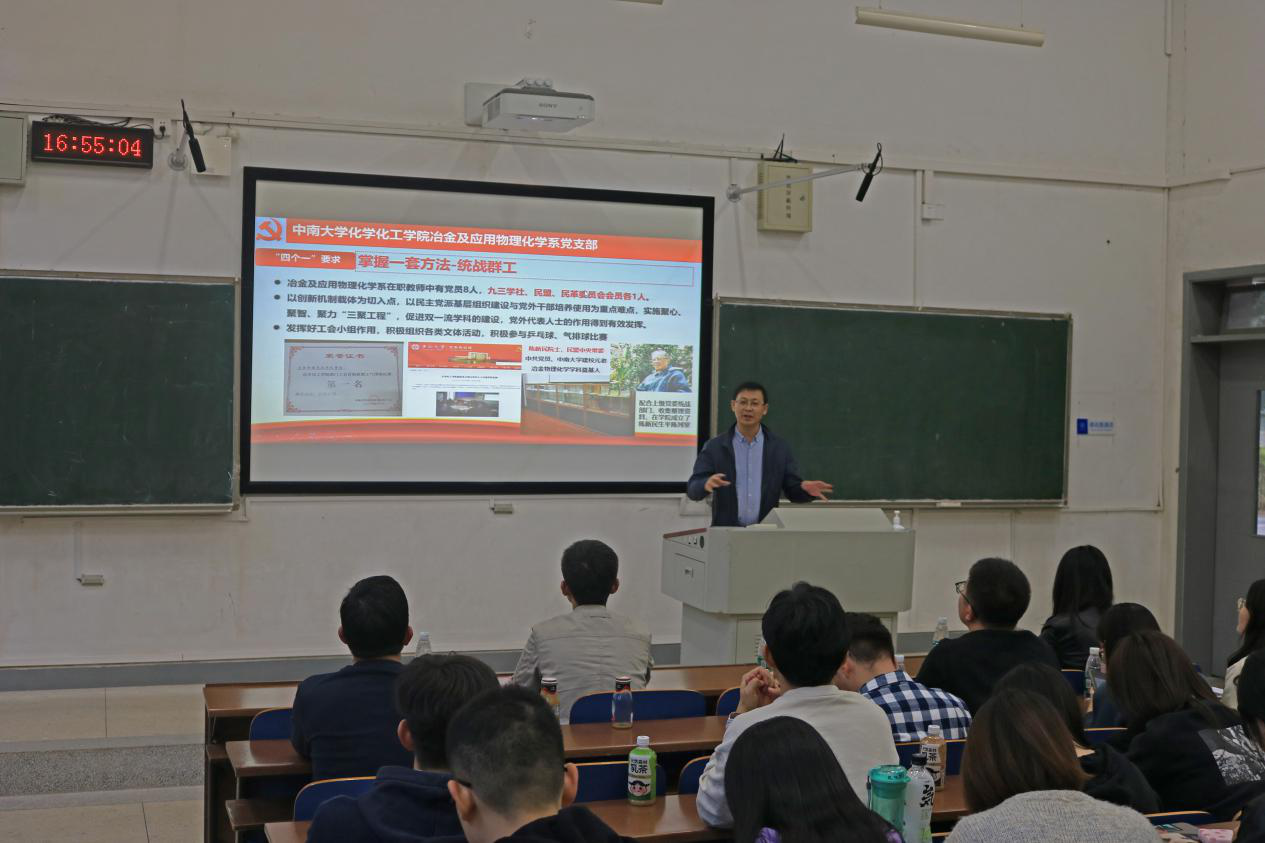接着,化学化工学院冶金与应用物理化学系党支部书记胡久刚进行经验交流。胡久刚老师是冶金及应用物理化学系副主任、学科带头人,现任伟德betvlctor1946首批样板党支部——化学化工学院冶金及应用物理化学系党支部书记、教育部首批“全国高校‘双带头人’教师党支部书记工作室”主要负责人之一。胡书记介绍了工作室的人员构成和建设由来。他介绍了在支部建设中牢牢把握“四个一”要求:扛起一面旗帜,扎扎实实做事,明确自我特色;树立一个榜样;带好一支队伍,引进高水平教师,做好队伍建设;掌握一套方法,培养好人才,鼓励创新创业。