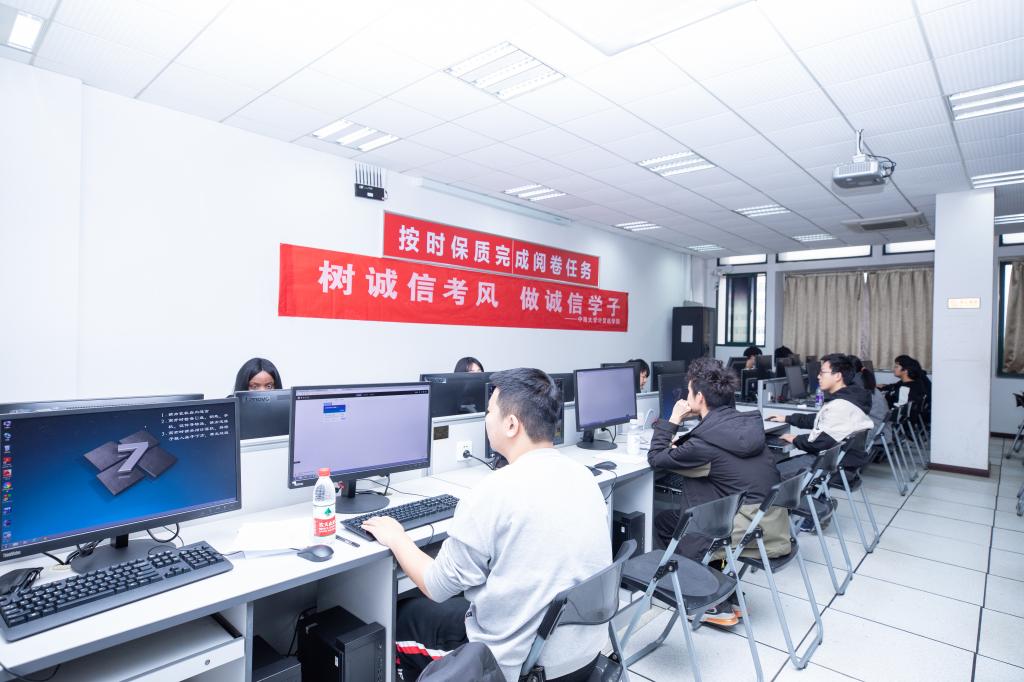 学院领导也高度重视,组织联动学院教研室、20级辅导员、班导师、学生干部等共同推进无人监考考试,考试正式开始前,在考场内外分别粘贴了诚信应考的宣传标语横幅和请勿打扰的提示牌,并由班长等主要学生干部组织学生有序进入考场,在开考前再次强调考试纪律;考试开始后,所有同学安静认真作答,遇到问题举手示意,并由巡考老师及时进行解答,同时巡考老师在监控室查看录像实时掌握学生考试情况,确保整场考试有条不紊地进行着。考试期间,全体同学诚实守纪、安静作答,考试全程无任何违规违纪现象发生,考场秩序十分良好。