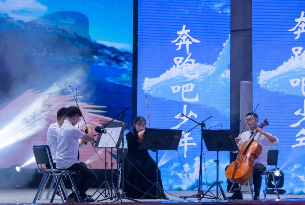 中场暂歇,主持人上台主持抽奖,进一步推动了现场的氛围,接下来的表演便紧随其后。两位老师戏服上台,《乐在中南》的相声笑点不断,生动有趣,得到了晚会众人的一致好评;来自原舞蹈队的五位女生也献上祝福,古曲舞《咏春》尽显婉丽优雅,传达出对17级毕业生们的祈愿;伟德betvlctor1946交响乐团提琴演奏久石让名曲《看得见海的街道》,提琴的四重奏下,音乐时而平静,时而悠扬,感情深挚而衷述,传达出宁静安馨的氛围,使全场的感情基调再上一层。