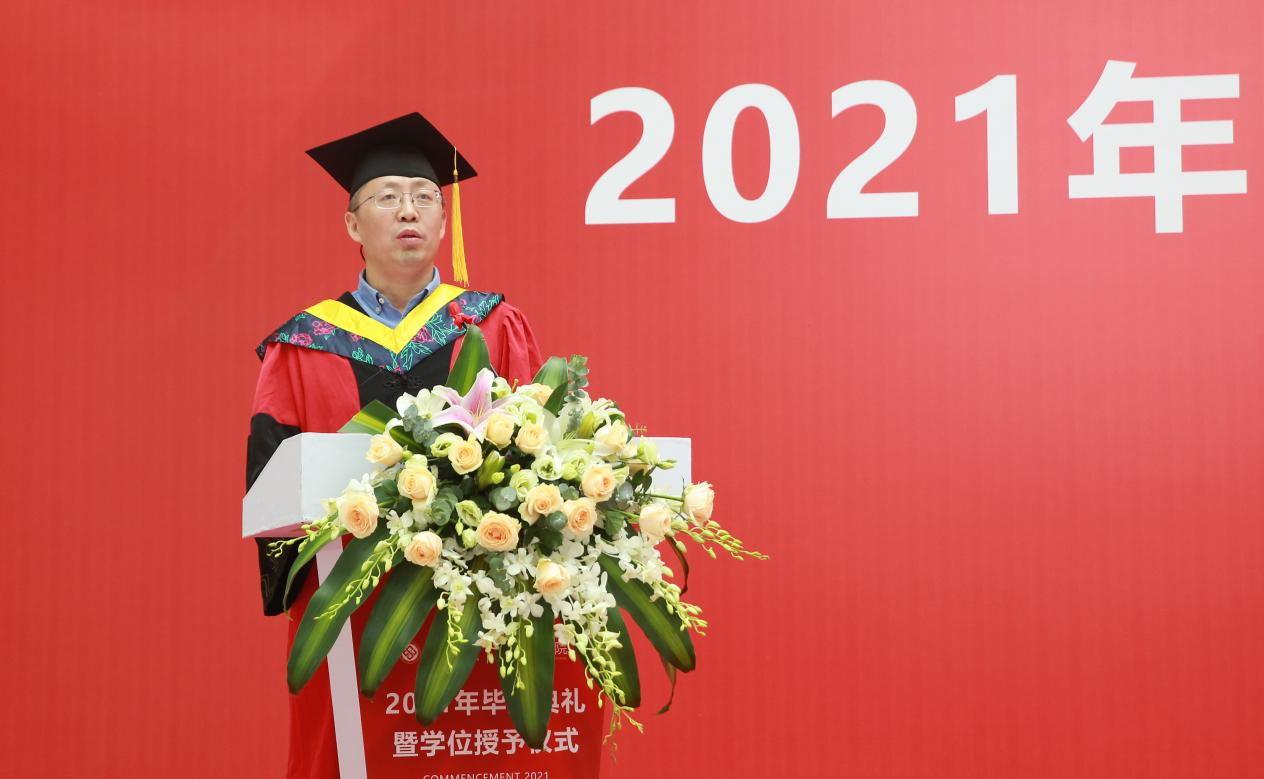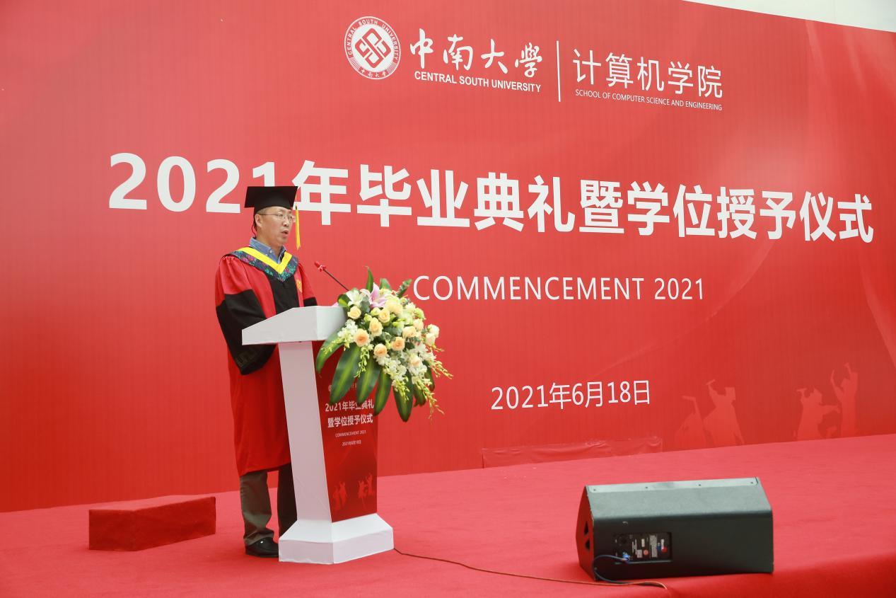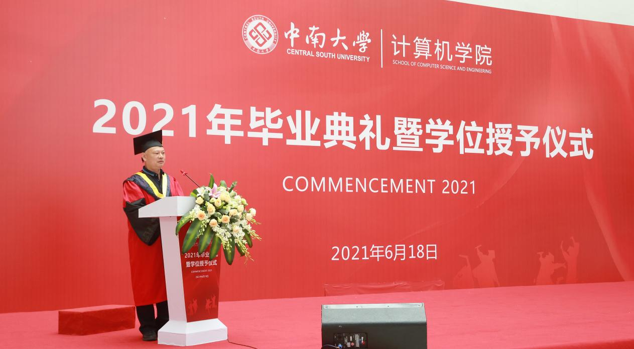 2021年6月18日星期五上午8点,伟德bv1946官网首页2021年毕业典礼暨学位授予仪式于新校区信息大楼顺利举行。参加此次毕业典礼的领导嘉宾有,伟德bv1946官网首页党委书记陈志刚,伟德bv1946官网首页院长王建新,大数据研究院院长龙军,伟德bv1946官网首页党委副书记史建权,学院副院长胡志刚、赵明、曾锋、邓晓衡、奎晓燕,大数据研究院副院长陈先来。本次典礼由学院团委书记许宁主持。