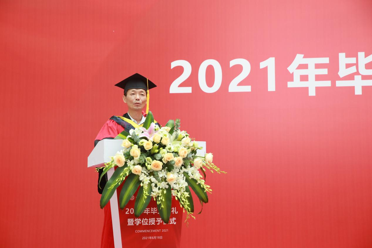 接着,由学院党委书记陈志刚教授发表讲话。陈书记提到,毕业生们已经拥有了人生奋斗的入场券,更需要担起社会的责任,让自己的青春奋斗与祖国的需求相结合。陈书记还强调到,成功是努力奋斗的结果,要坚定理想信念,树立人生目标,在未知旅途的征程里不断奋进。希望毕业生们能够带着学校与老师的祝福在人生道路上大放异彩。