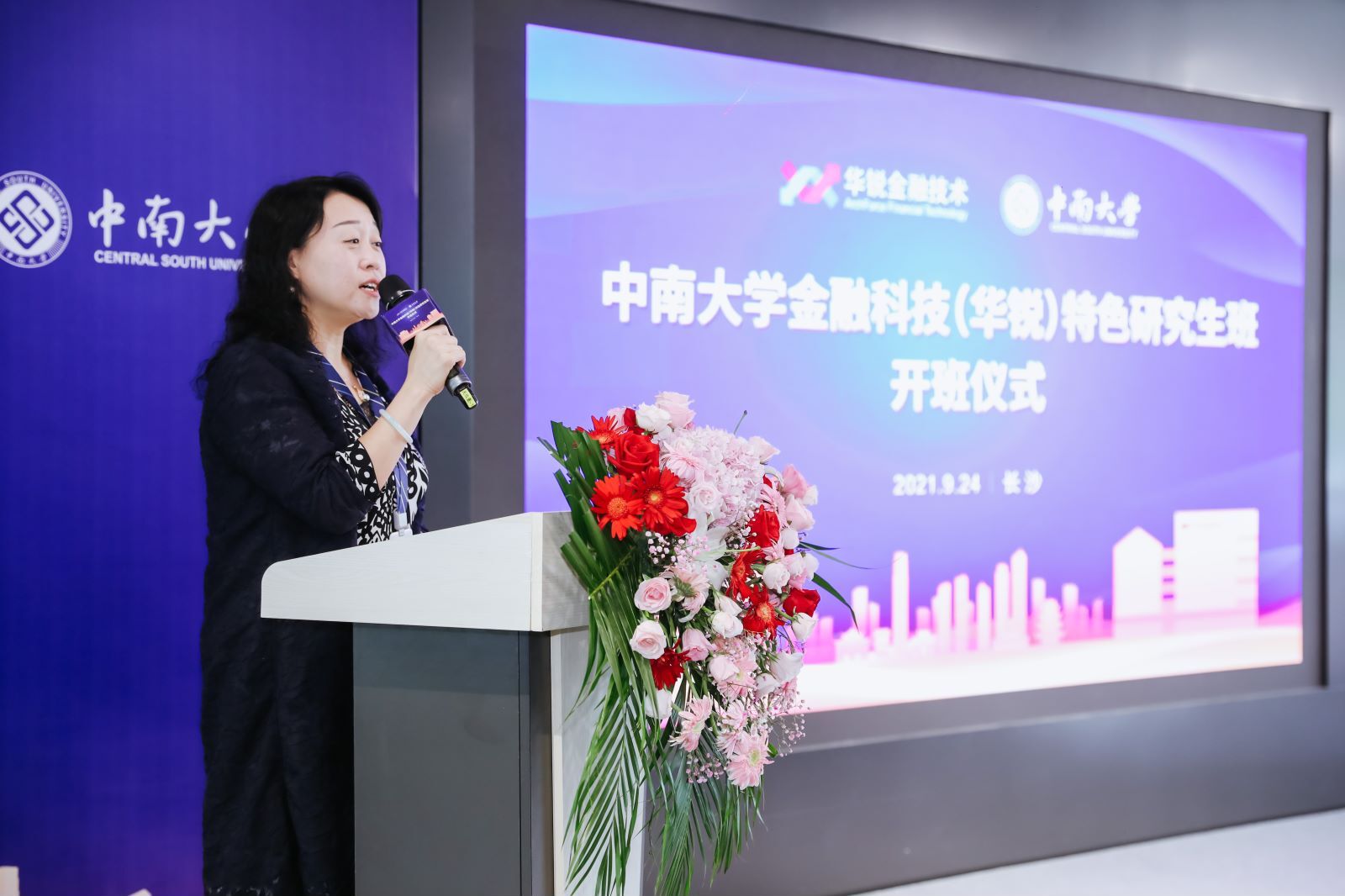 华锐金融总经理苗咏上台致辞,她表示,此次金融科技研究生班开班,对于整个行业来讲都是一次积极的创新与尝试,在如今这个信息技术变革的时代,金融行业也面临着数字化的改革。此次与伟德betvlctor1946合作的金融科技班旨在为行业输送更多高素质、高技能的技术人才。强调华锐会为同学们提供许多实践机会与学习资源,对同学们进行针对性的培养。