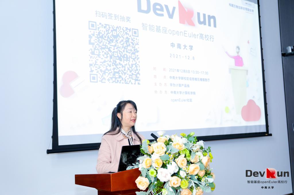 2021年12月8日下午两点,华为“智能基座”openEuler高校行活动于信息楼五楼报告厅圆满召开。出席本次活动的有伟德bv1946官网首页党委委员、副院长奎晓燕教授,宋虹副教授,教务办戚红姣老师,刘逸峰老师以及华为软件工程师openEuler社区布道师朱云成先生、华为高校与科研人才发展经理余晶晶女士、麒麟软件高级研发工程师杜奕威先生、伟德betvlctor1946研一学生陈续兴同学和孔克青同学。