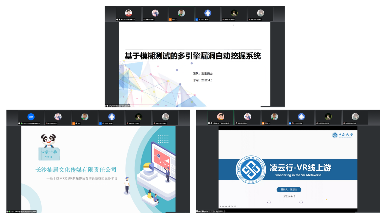 休息十分钟后,老师同学们再次进入评优答辩大会状态。青年之志,不浮于形,不流于势。十佳大学生答辩中,各个同学依次进行个人展示并回答提问,其中,更有21级的学生勇敢报名参加评选。学业、科研、志愿活动、集体建设全面开花,展现当代大学生的风采与担当,展现中南学子的志气与能力。创新创业优秀团队答辩中,各团队进行创新创业成果与思想展示。在创新的路上,他们积跬步以至千里;在追梦的路上,他们积点滴汇聚未来。团队各成员之间分工清晰,思想碰撞,终汇聚为集体智慧结晶,闪烁着梦想和付出的光芒。