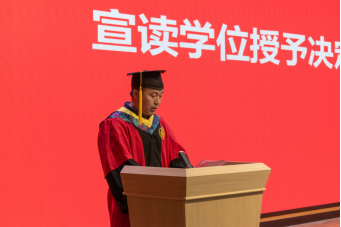 学院副院长邓晓衡教授代表学院宣读伟德bv1946官网首页《关于授予陈宏亮、马洪旭等651人学士学位的决定》和《关于分别授予李若楠等287人硕士学位、项炬等14人博士学位的决定》。