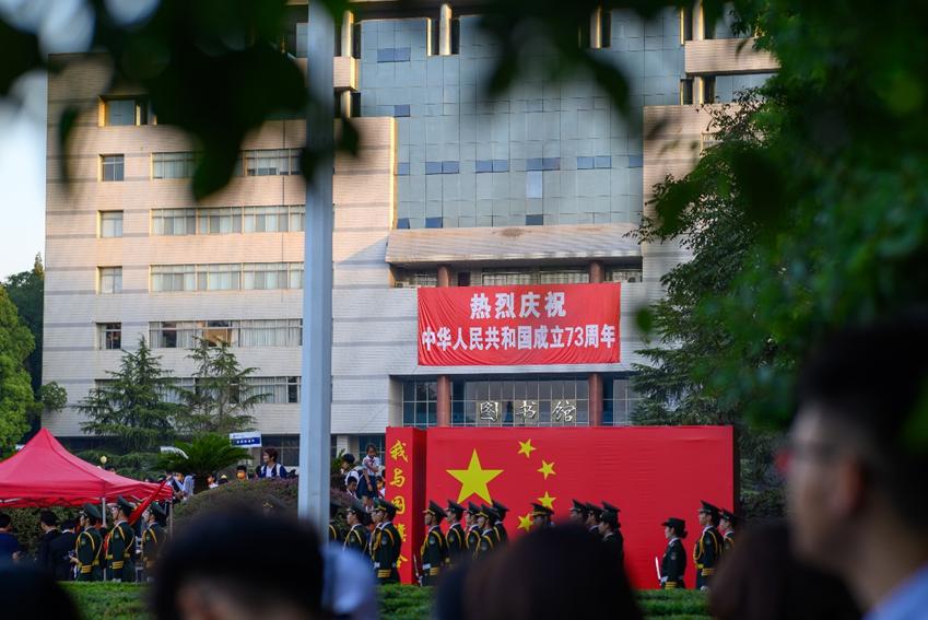 礼毕后,国歌领唱团成员、文学与新闻传播学院何淇滢做国旗下演讲。回顾73年伟大征程,奋进百年目标,她说到:“为有牺牲多壮志,敢教日月换新天。时光洪流滚滚向前,中国的步伐从未停止。”她还号召同学迸发青春能量,肩负强国使命,扛起时代担当。