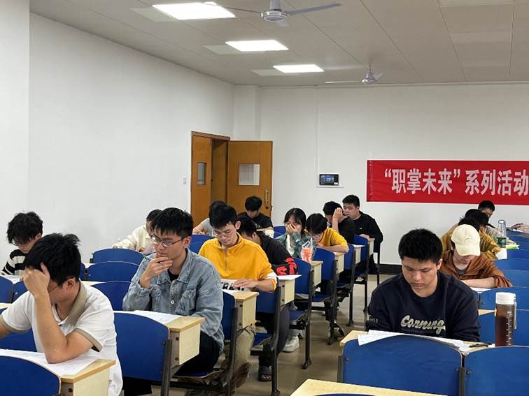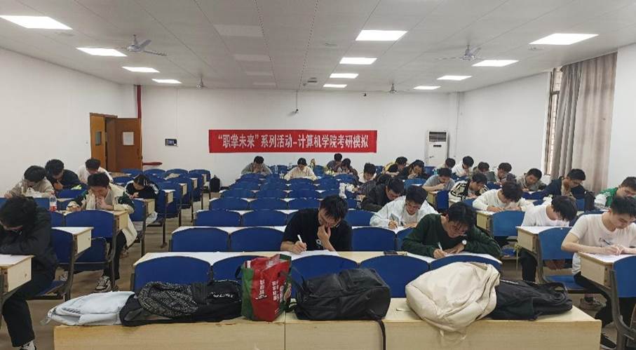 此次模拟考严格参照考研规范,从考试时间精准把控、考场规范布置、到试卷分发等环节,均按照正式考试流程进行。考场上,同学们专注答题,时而演算推导,时而认真思考,全力投入;监考人员严谨履职,确保考场秩序井然。