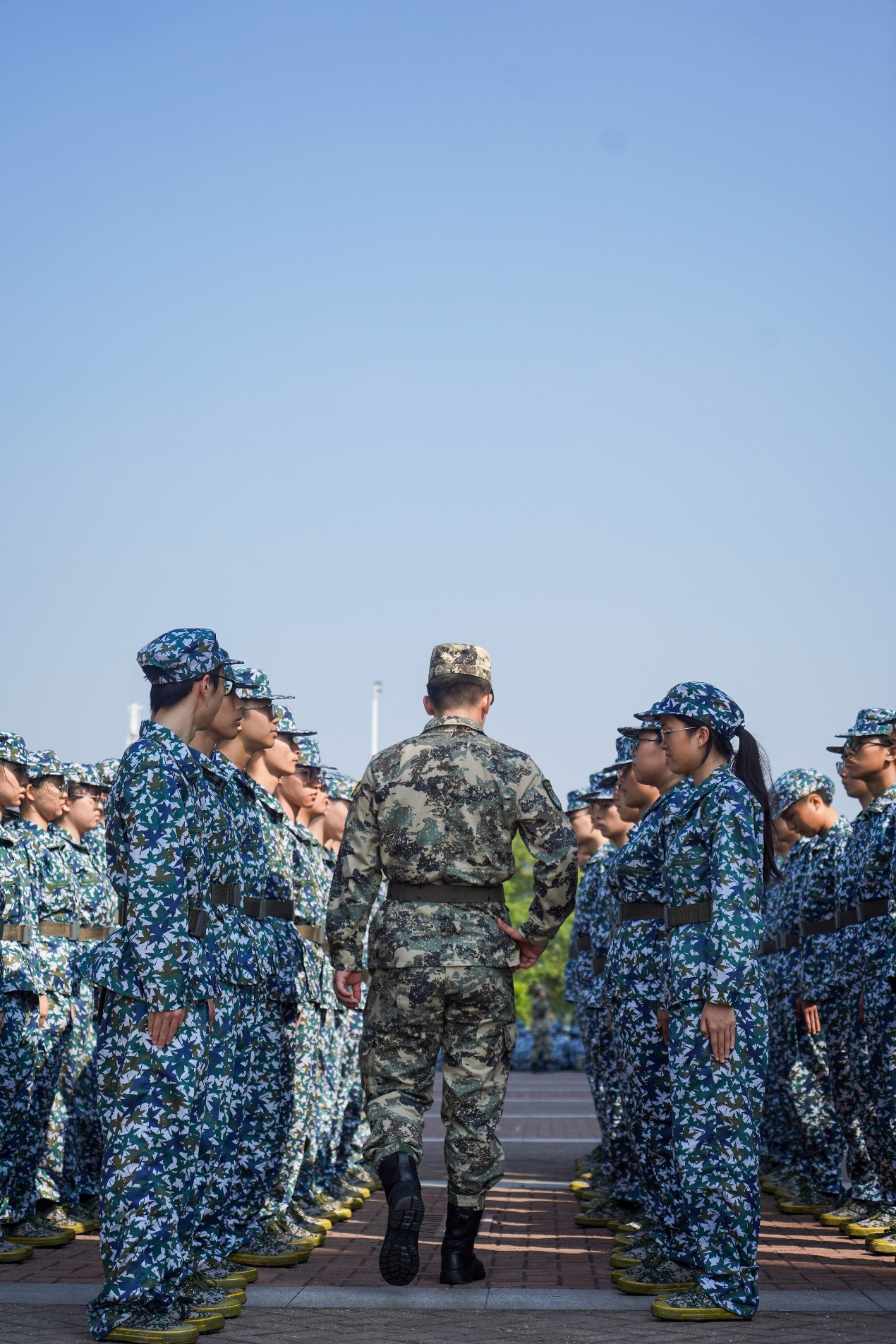 晨曦中,新生们身着统一迷彩,精神抖擞,在教官的带领下迅速集结。他们目光坚定,身姿挺拔,以饱满的热情投入这堂大学生涯的“必修课”,校园里处处洋溢着青春的活力与豪情。