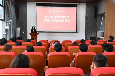 王新辉书记发表讲话,向转专业同学表示期待与关怀,鼓励同学们主动拥抱变化,迎接挑战,争做一流,并呼吁同学们积极参与班级活动,增强凝聚力;向新疆大学交流生提出了殷切期望,希望大家珍惜在校的学习机会,充分吸收教学资源,未来发挥“传帮带”作用,将所学所得分享给原学校同学。