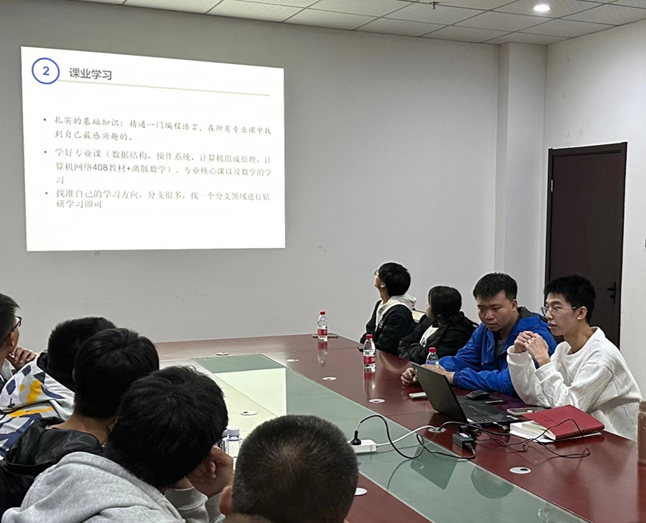 随后,港澳台优秀学生李博宇、吴越龙就学习经验、科研竞赛、学生生活等方面进行了交流分享。李博宇同学介绍计算机专业课程,多角度说明掌握一门计算机语言的重要性,同时就打好数理基础问题分享了线上课程学习平台,以及个人比赛与实习经历。吴越龙同学从奖学金的申请要点入手,分析通识基础课如高等数学、大学物理的重难点,鼓励同学们立足课业学习,找准学习方向。吴越龙同学还结合自身考研经历,分享了目前考研难度、目标院校、整体时间安排及考研心态等方面,给予同学们可借鉴建议。